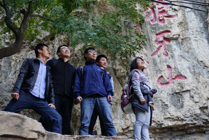 随后,党员们互相鼓励,攀爬狼牙山,到达顶峰。面对眼前巍峨雄壮的悬崖,遥想这段历史上的壮举,敬佩感动之情油然而生。党员们纷纷表示热爱祖国的大好河山,更加坚定理想信念,珍惜人生的年轻阶段,不懈努力,为科研事业不断付出。