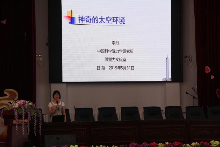 当天下午,支部党员来到西合营中学,为学生们做科普宣讲。2015级博士生李丹作了《神奇的太空环境》的主题报告,利用地球上和微重力环境中火焰形状的不同、水滴的状态的不同、水膜的稳定性等实例向同学们展现了太空的环境,并讲解了太空环境与地球环境的产生差异的原因,让同学们感受到太空的奥秘。