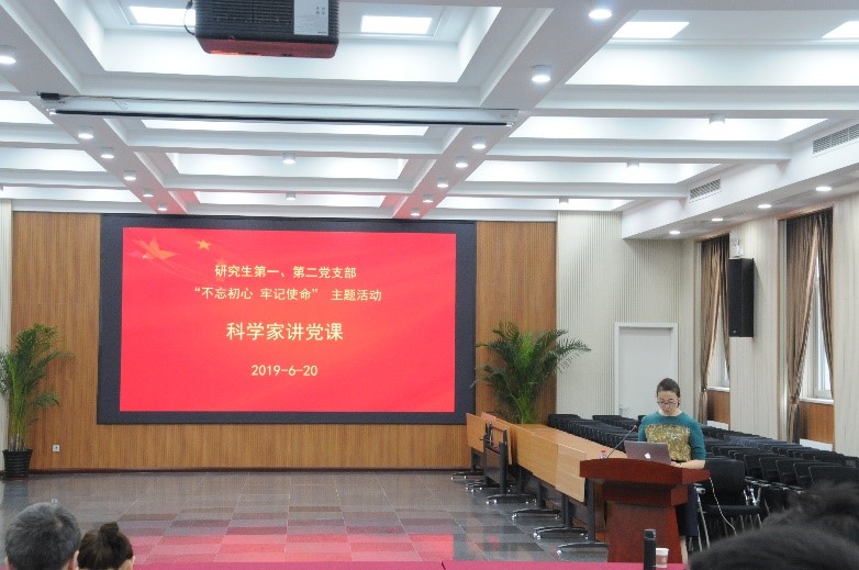 6月20日,研究生第一、第二党支部组织“不忘初心、牢记使命”主题教育。本次活动以科学家讲党课的形式开展,邀请了联系研究生党支部的党委委员姜宗林研究员为研究生党员讲党课。研究生第一、第二党支部共60余名党员参加了活动,党办相关同志应邀出席,会议由研究生第二党支部书记刘丽主持。