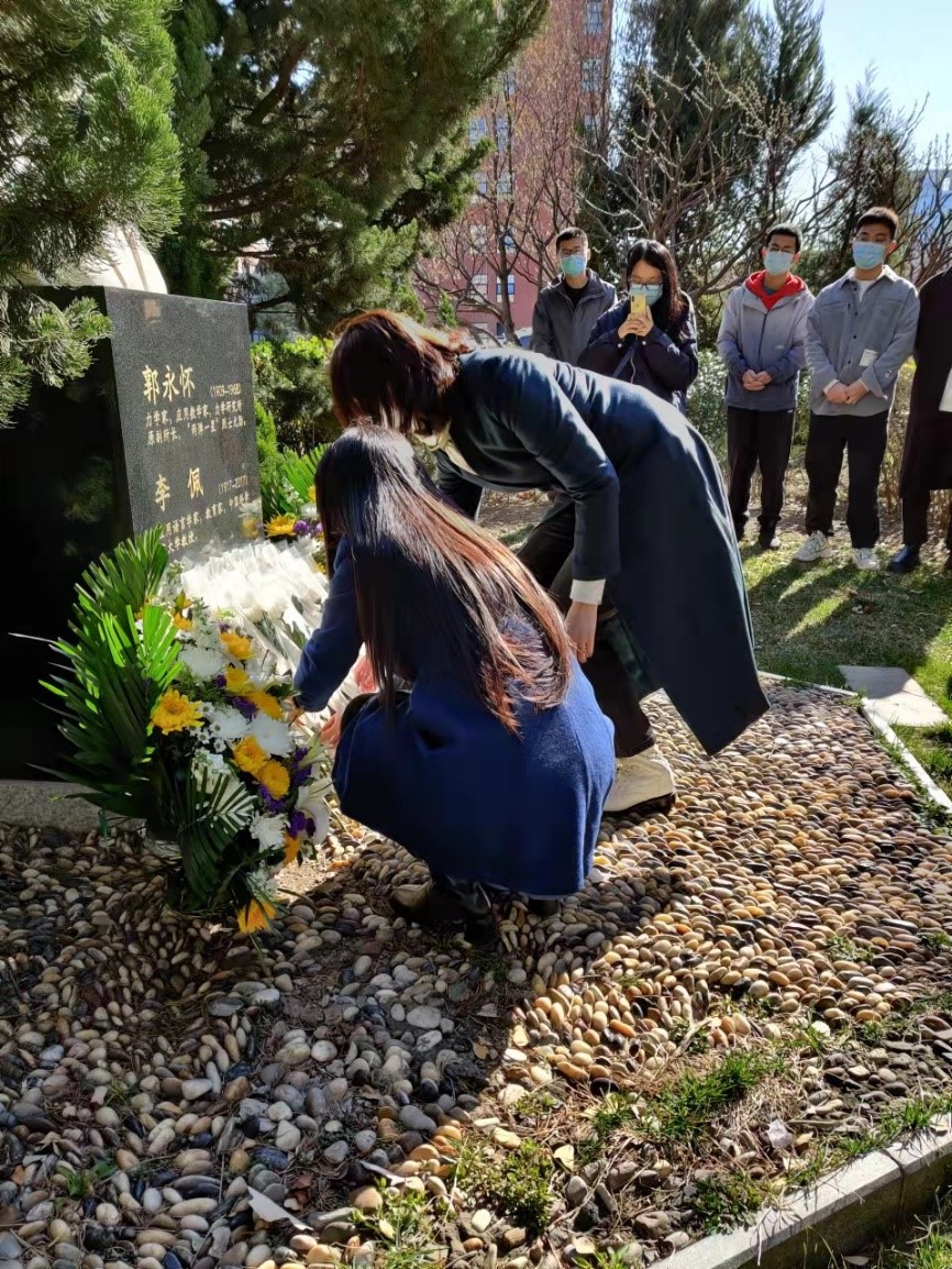 献花仪式现场师生全程佩戴口罩,秩序井然。献花仪式结束后,还有不少所内的师生前往两位先生的碑前鞠躬表示敬意,显现出Q彩网的后辈们尊敬前辈、向科学家学习的良好风气。