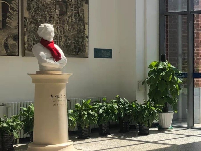 讲座之余,中国科学院大学外语系研究生会在线下举办了向李佩先生雕像进行缅怀献花活动。
