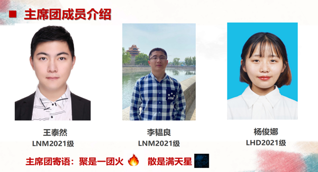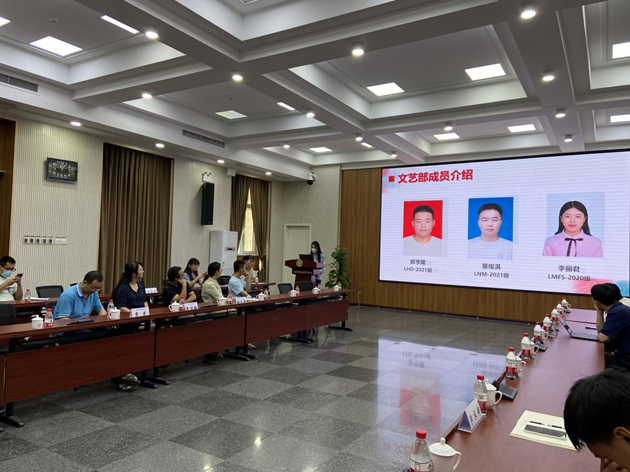 首先上一届研究生会主席邱鑫总结了研究生会过去一年的工作情况,包括组织架构、活动开展情况等各个方面的工作。邱鑫表示工作虽然充满挑战,但在研究生会所有成员的共同努力下,工作得以圆满完成。接着新一届主席团王泰然、杨俊娜介绍了研究生会各部门职责和概况。