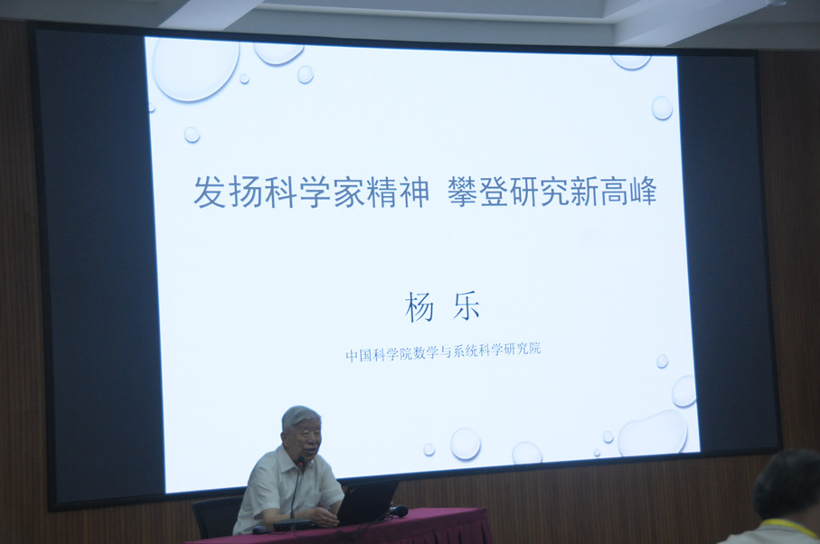 杨乐作了题为《发扬科学家精神,攀登研究新高峰》的精彩报告。他指出:科研人员应以老一辈科学家为榜样,大力弘扬科学家精神,胸怀祖国、服务人民、追求真理、勇攀高峰。就如何从事好科研工作,他指出,兴趣是科技工作的原动力,需求是科技工作的牵引力,创新是科技工作的生命力;要有远大的理想抱负,个人命运必须与国家的利益结合起来,科研方向比速度更重要。报告后,所内科研人员围绕研究方向确定以及研究生教育等问题与杨乐院士进行了热烈的讨论和交流。