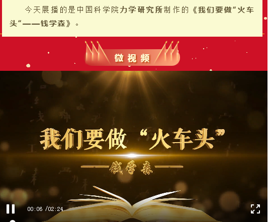 为增强全所职工档案意识,发挥档案支撑和服务研究所文化建设的作用,近日,综合档案室以“档案中的老科学家精神”为主题,利用室藏名人档案资源进行了微视频制作,共制作七集,分别是《我们要做“火车头”——钱学森》《作为中国人,我有责任回到祖国——郭永怀》《钱伟长:心系祖国的科学家》《在科学的春天勇挑重担——李敏华》《祖国力学事业辛勤的耕耘者——谈镐生》《一切以国家利益为重——林同骥》和《归乡之路——吴仲华李敏华》。并于6月9日至6月28日,在中国科学院档案馆微信公众号进行展播。
