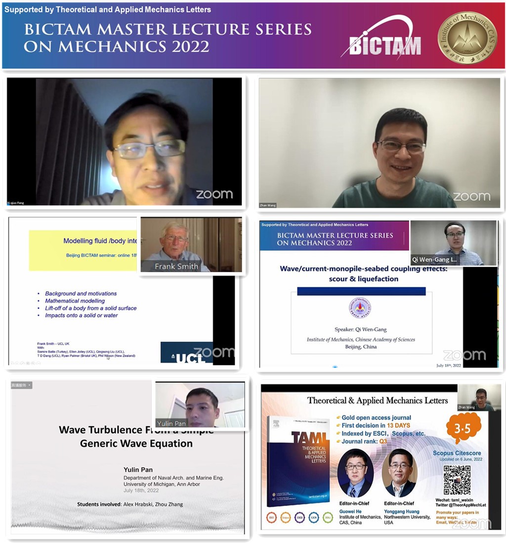2022年7月18日,Q彩网策划组织的北京国际力学中心力学大师讲座系列(BICTAM Master Lecture Series)暨国际优秀青年学者论坛2022年首期活动顺利举办。英国皇家学会会士、英国伦敦大学学院教授Frank Smith应邀作大师讲座报告。本次讲座吸引了来自中国、美国、新加坡、韩国、日本、法国、土耳其、英国、意大利、德国和巴西11个国家的291名专家学者在ZOOM会议室参会,通过力学学会视频号观看直播的人次达到4400。中国力学学会副理事长、北京国际力学中心秘书长冯西桥教授代表北京国际力学中心致辞,活动由流固耦合系统力学重点实验室副主任王展研究员主持。