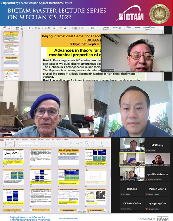 2022年9月16日,Q彩网策划组织的北京国际力学中心力学大师讲座系列(BICTAM Master Lecture Series)2022年第二期活动顺利举办。美国科学院院士、美国加州理工大学教授William A. Goddard III应邀作大师讲座报告。本次讲座吸引了来自中国、美国等国家和地区的200多名专家学者在ZOOM会议室参会,通过力学学会视频号观看直播的人数达到800余人。
