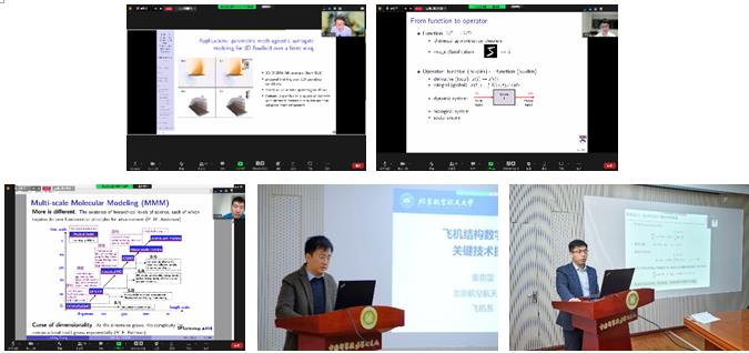 会议共有30个报告,其中邀请报告包括:香港科技大学张统一院士的报告《专业知识指导下的机器学习》;西北工业大学张卫红院士的报告《我与结构多尺度问题研究》;美国工程院院士、布朗大学G. Karniadakis教授的报告《 Physics-Informed Machine Learning: Blending data and physics for fast predictions》;哈尔滨工业大学(深圳)B. Noack教授的报告《Turbulence Control — Better, Faster and Easier with Machine Learning》;大连理工大学郭旭教授的报告《基于机器学习的大规模结构分析与拓扑优化》;清华大学任祝寅教授的报告《Machine Learning in Turbulent Reactive Flow Simulations》;以及北京科学智能研究院张林峰研究员,北京航空航天大学董雷霆教授,美国伦斯勒理工学院Shaowu Pan助理教授,美国宾夕法尼亚大学的Lu Lu助理教授,Q彩网张鑫磊博士等嘉宾的报告。