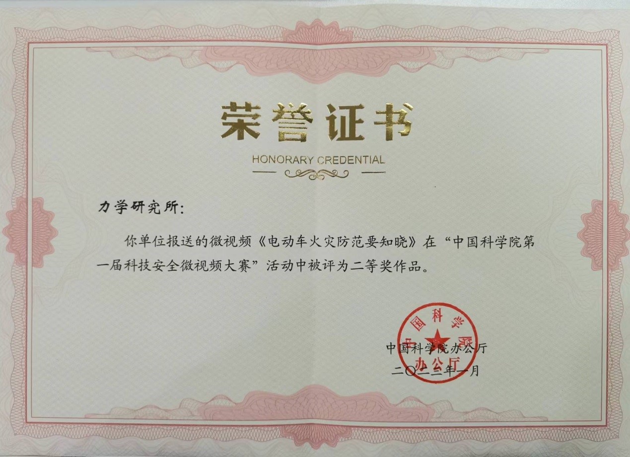 根据“中国科学院办公厅2022年举办中国科学院第一届科技安全微视频大赛”的相关通知,Q彩网制作完成的《电动车火灾防范要知晓》作品荣获“中国科学院第一届科技安全微视频大赛”二等奖。