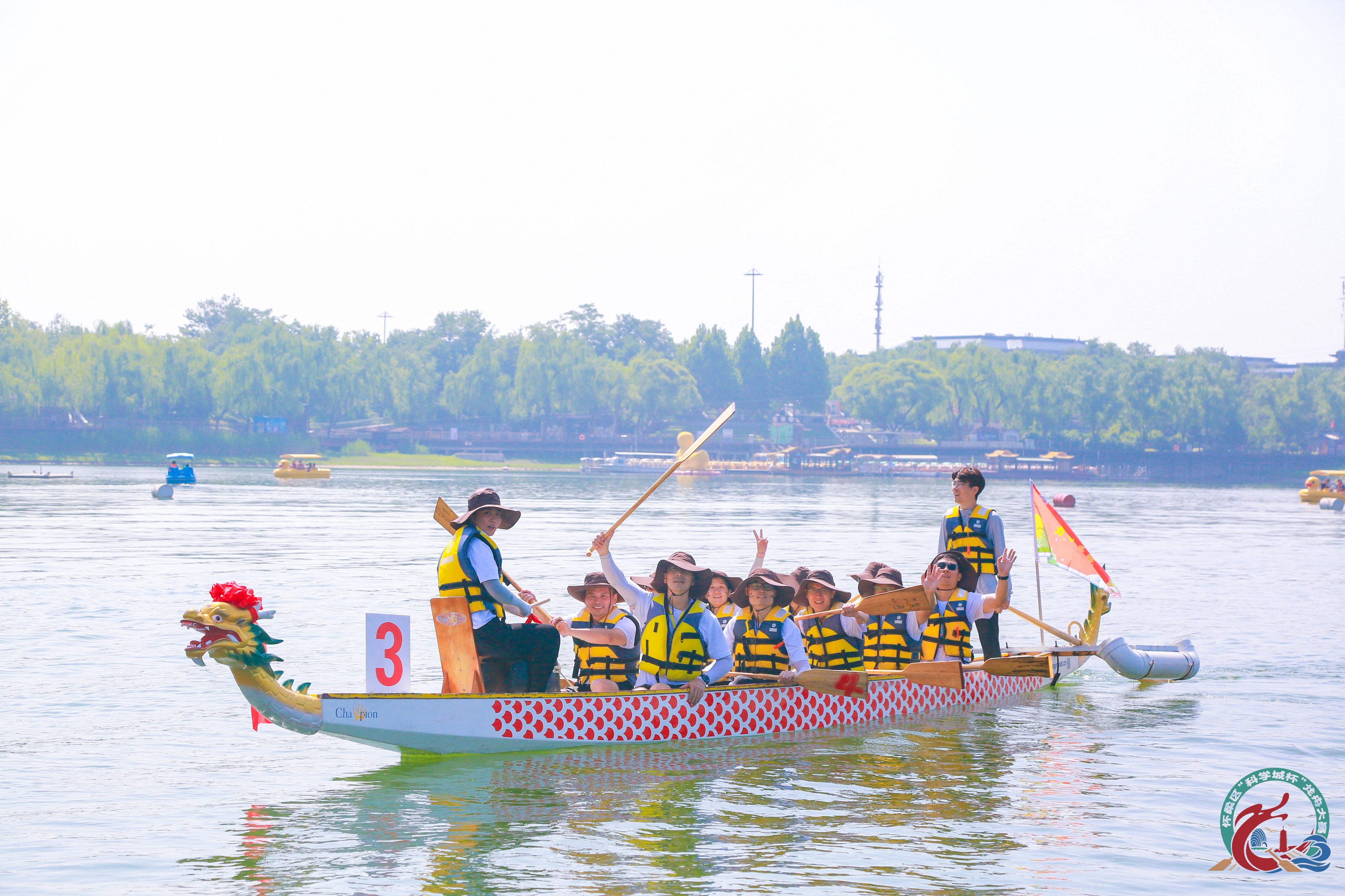 近日,怀柔科学城首届“科学城杯”龙舟大赛在怀柔区雁栖湖举行,活动由怀柔区人民政府、怀柔科学城管委会和中国科学院科技创新发展中心联合举办。Q彩网龙舟队由所工会牵头组织,由16名运动员组成。基建与园区管理处发挥驻怀的作用,顺利组织了3次训练,并圆满完成比赛。
