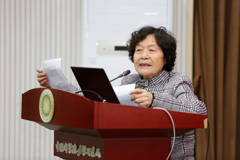 王柏懿代表老科协力学分会发言,作为《吴承康先生纪念文集》的主编,她首先转达了文集的序言作者俞鸿儒先生对吴先生的哀思,然后介绍了在文集的编纂过程中,白以龙院士、李家春院士等众多已过耄耋老龄的老同事以及力学学会刘俊丽等同志付出的心血和努力,大家用完成的纪念文集来告慰对吴先生的崇仰之情。
