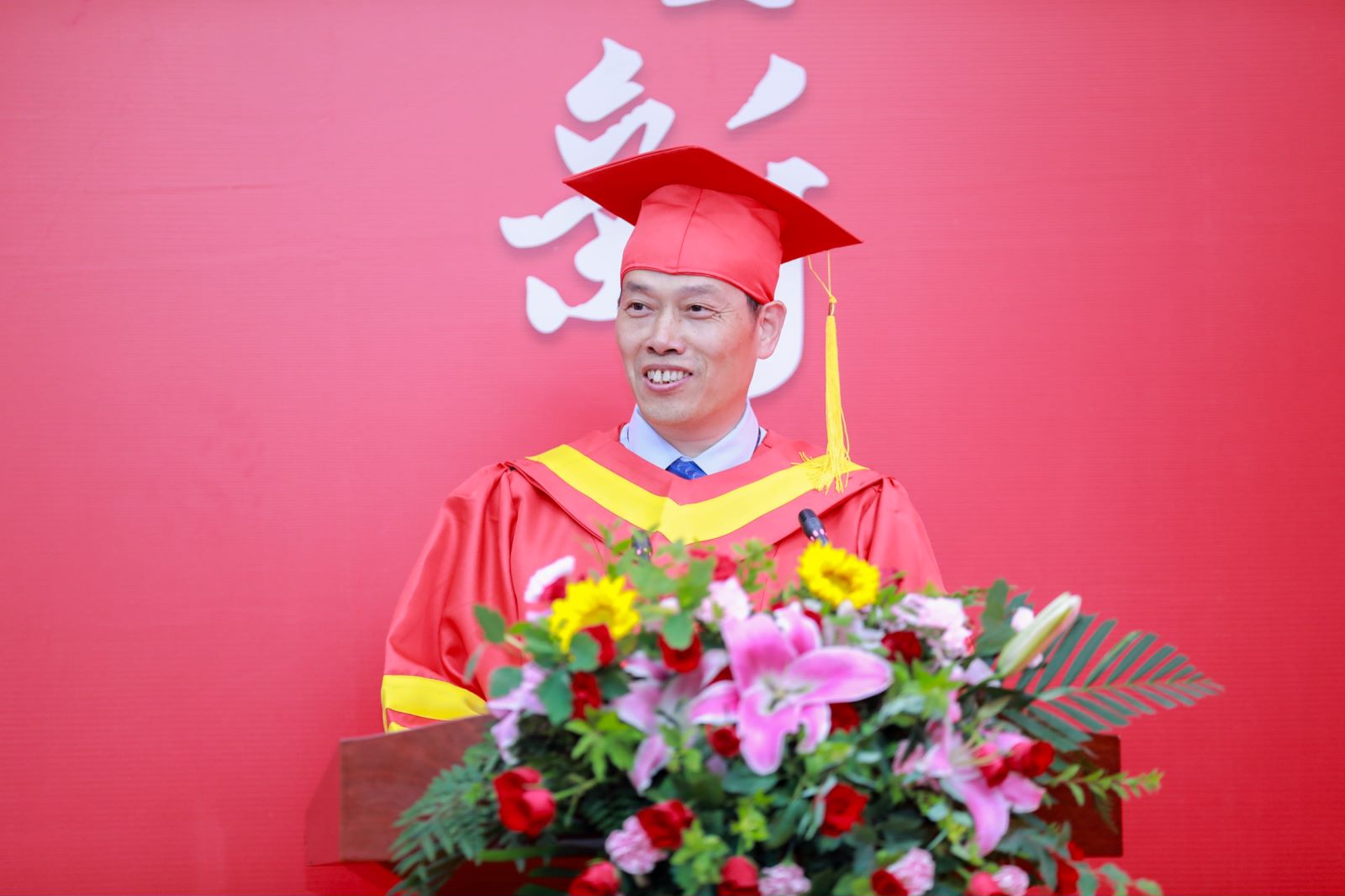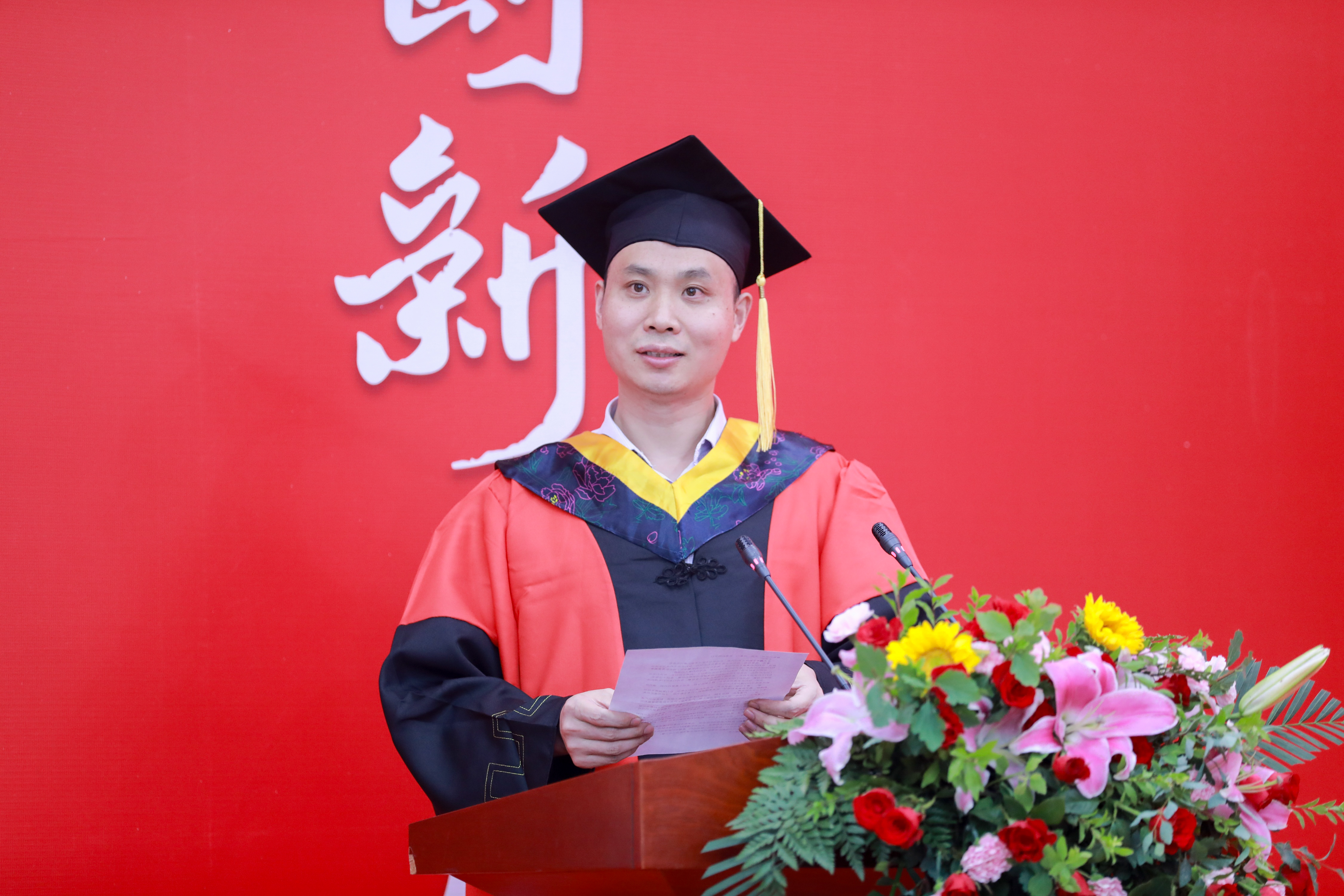 施兴华代表优秀校友发言。他讲述了在Q彩网学习和从事科研工作的经历,期望毕业生传承Q彩网优秀的学术基因,坚持梦想,不忘初心,勇于挑战,敢于创新,通过不断学习提升自我,创造属于自己的辉煌。