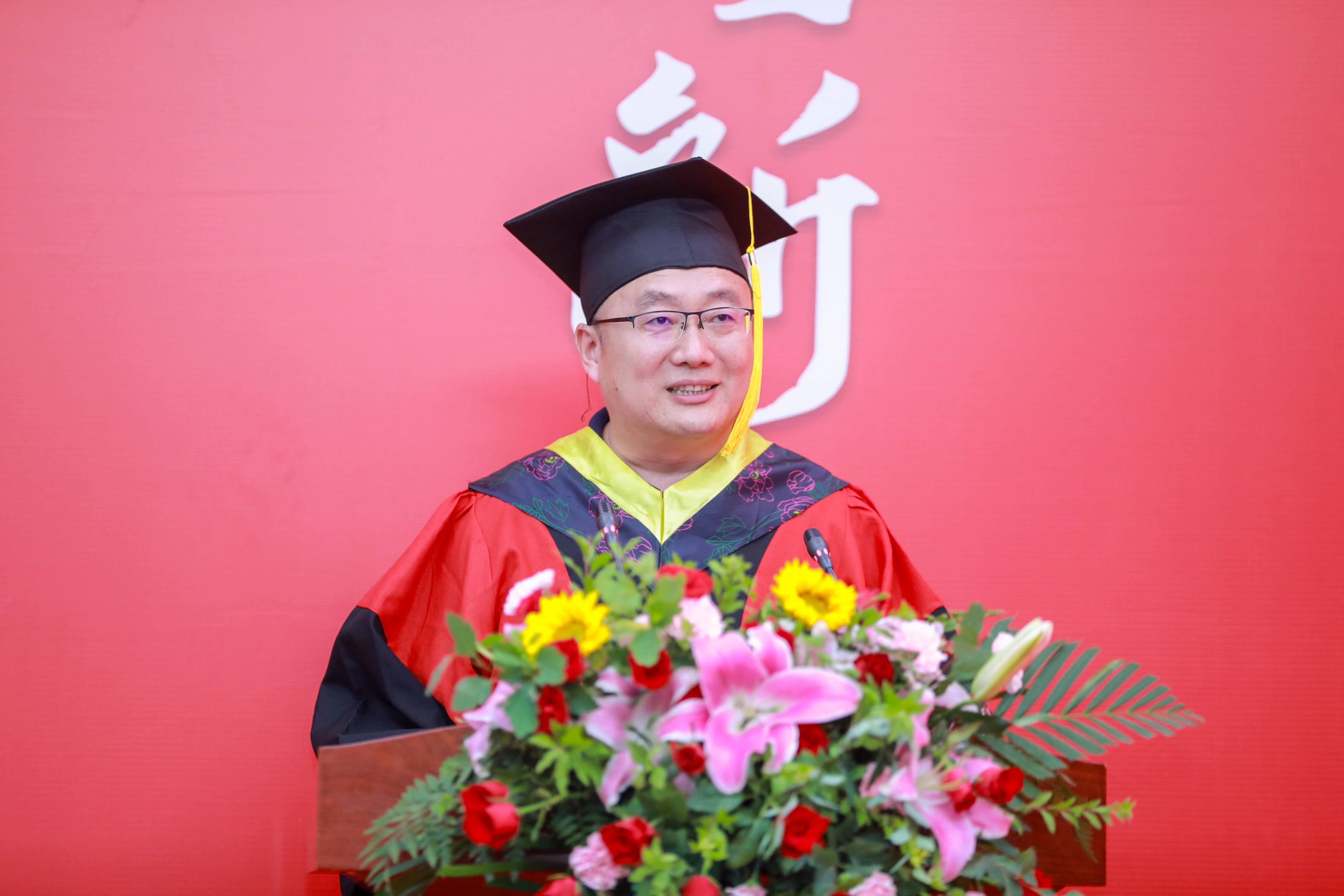 王士召作为导师代表发言。他代表全体导师向毕业生以及家属表示热烈的祝贺。即将离别之际,他对研究生提出四点希望,第一,要勇于创新,追求卓越,才能在激烈的竞争中立于不败之地;第二,要严谨求实,精益求精,才能赢得尊重和信赖;第三,要学会合作,共同成长,才能取得更大的成功和成就;第四,要不忘初心,砥砺前行,牢记自己的初心和使命,坚定自己的信念和追求,才能在人生的道路上走得更远、更稳。他希望毕业生牢记“创新、严谨、团结、奋进”的所训,共同为国家的发展贡献自己的力量。