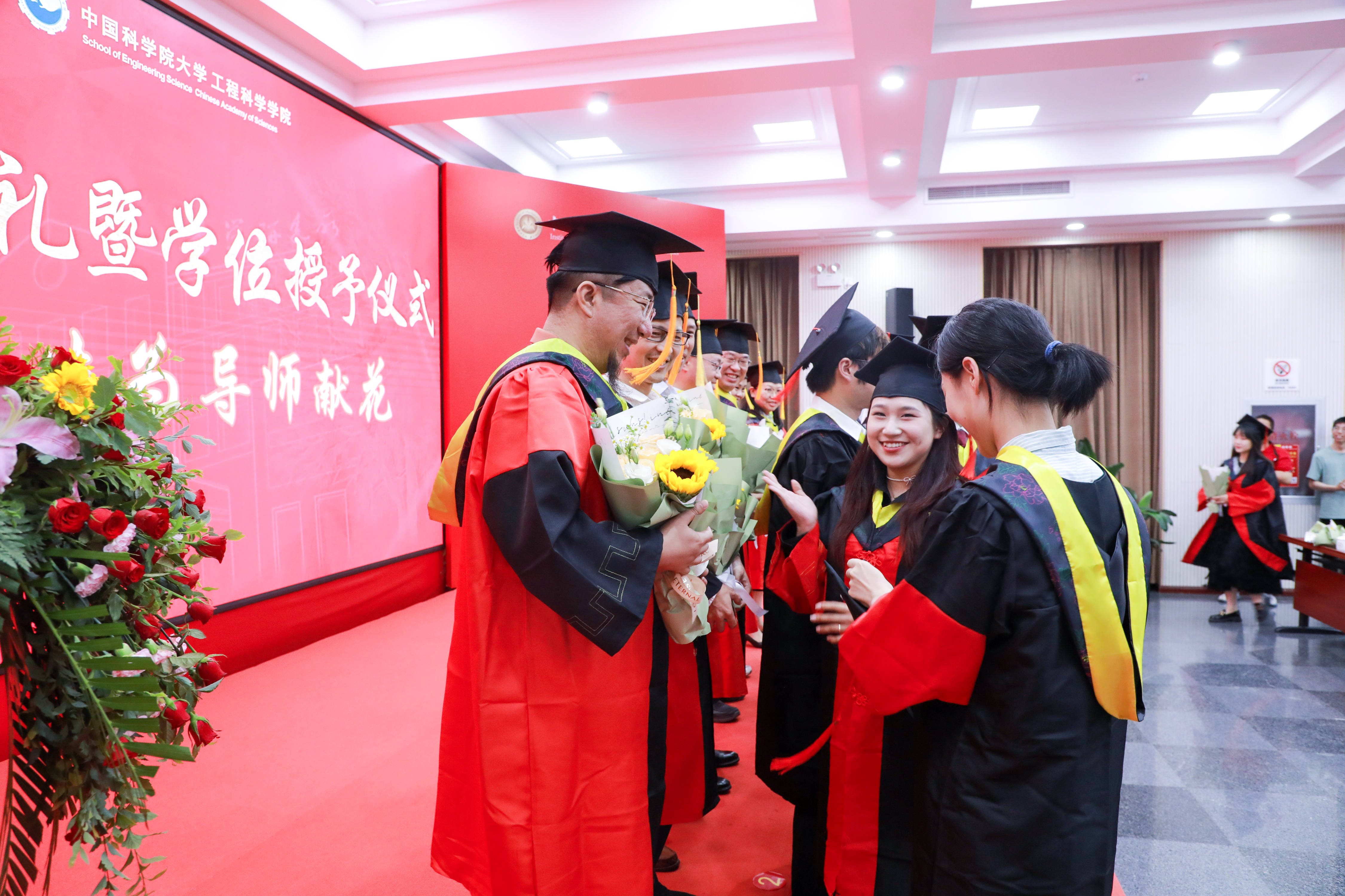 毕业生还为导师们献上鲜花,表达对导师的感激之情。