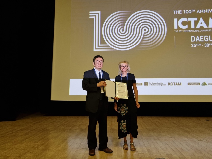 8月25日至31日,第26届世界力学家大会(ICTAM)在韩国大邱隆重召开。该会议是国际力学领域最高水平的学术盛会,每四年举行一次。本次大会恰逢ICTAM 100周年,吸引了全球两千余名学者参加,共设置十六个大会邀请报告。中国科学院院士、非线性力学国家重点实验室何国威研究员被推选作45分钟大会邀请报告。这是本次大会唯一来自中国的大会邀请报告,也是继2008年力学研究所胡文瑞院士之后,中国流体力学学者第二次作45分钟ICTAM大会邀请报告。
