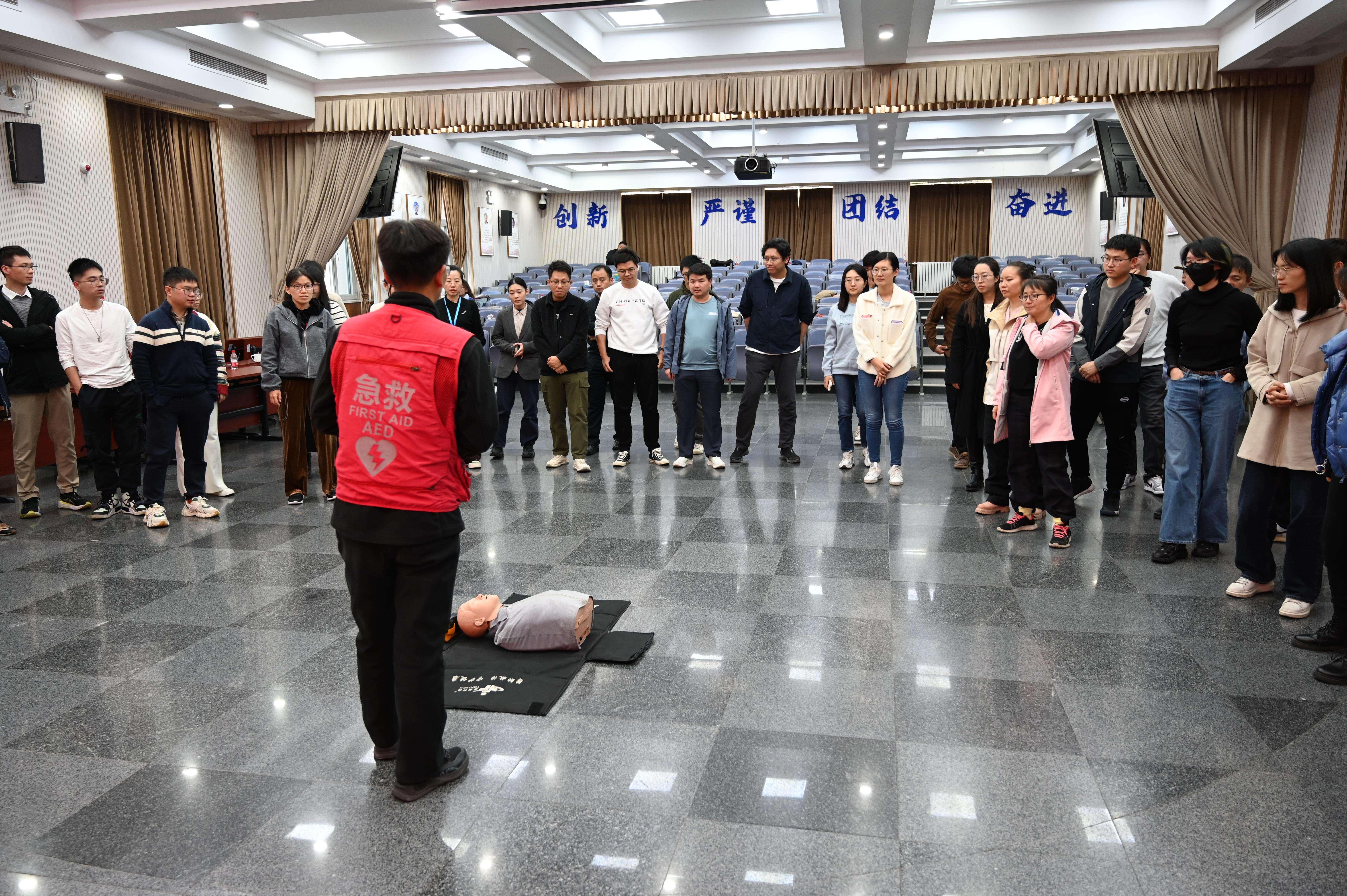 随后,各职能部门分别介绍了部门职责及办事流程,就新聘人员关心的问题做了详细的介绍。会议还邀请了AHA HS急救员进行体外自动除颤器(以下简称“AED”)急救培训。培训阐述了掌握急救技能的重要性,并采用理论与实操相结合的方式,对心肺复苏、AED使用等急救技能进行操作示教。随后,参会人员进行了实操训练。