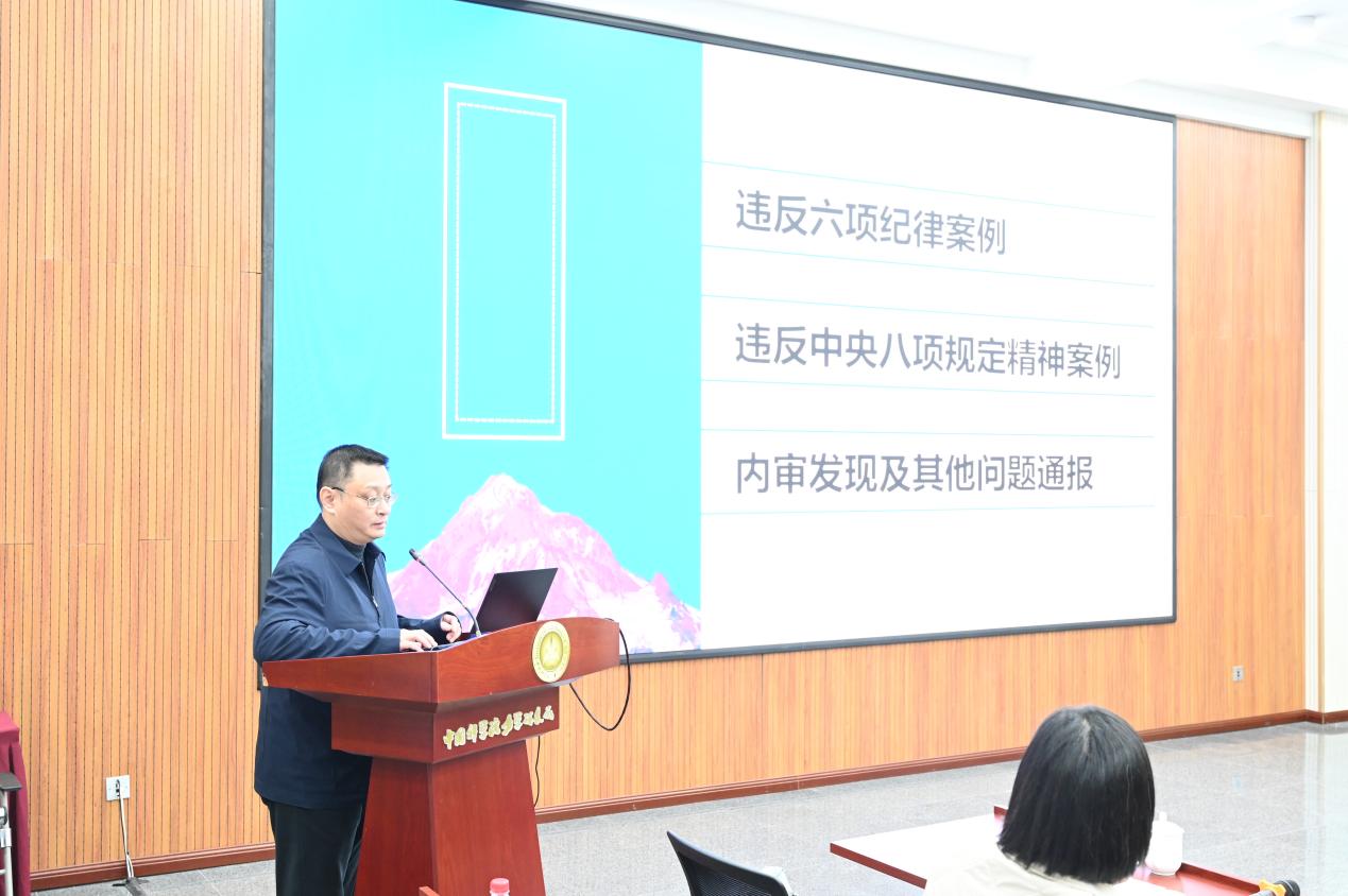 会上,纪委委员仲峰泉作警示教育报告,通报了2024年内审发现及整改的重要问题,集体学习了党员干部违纪违法案例。