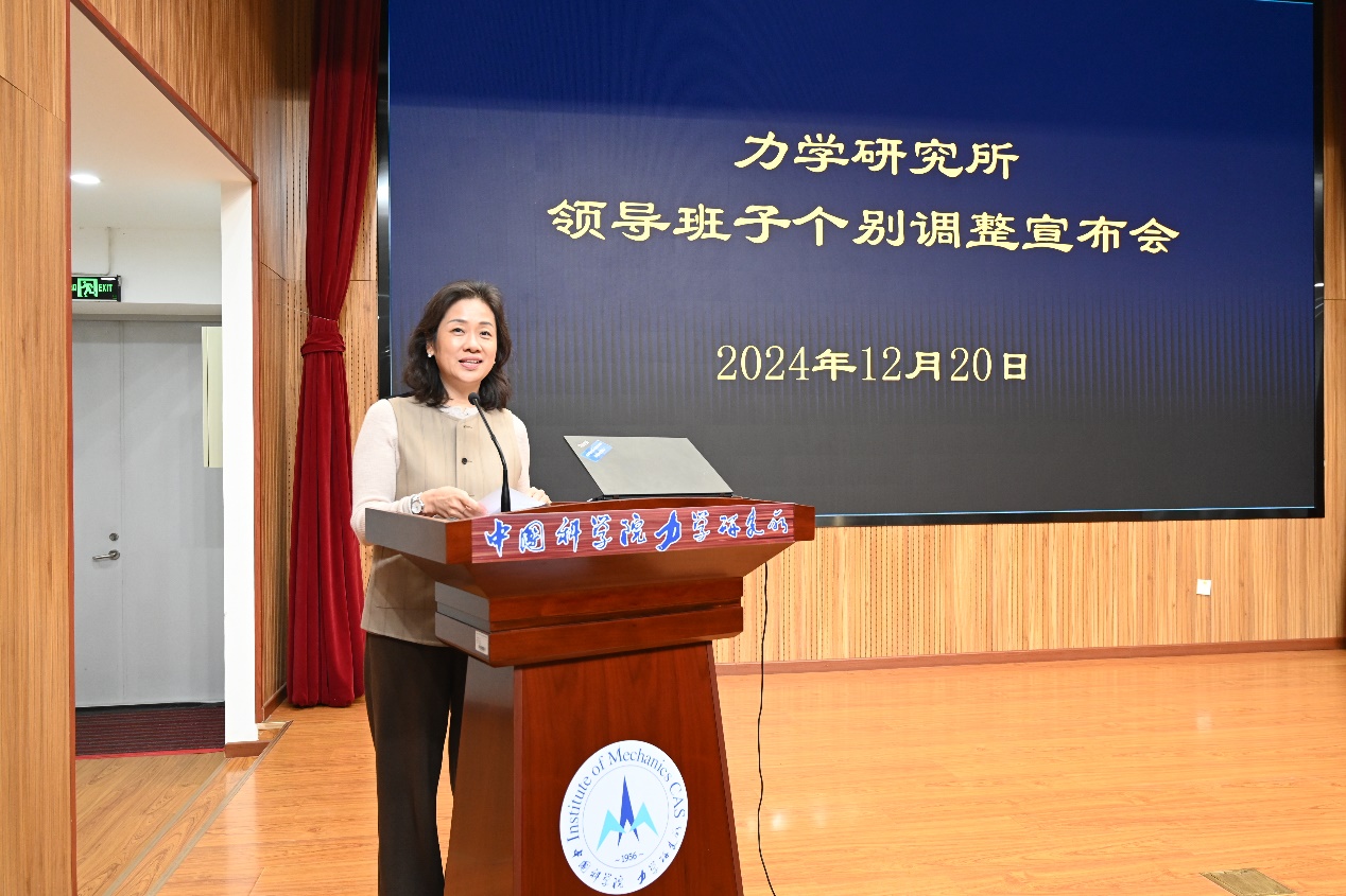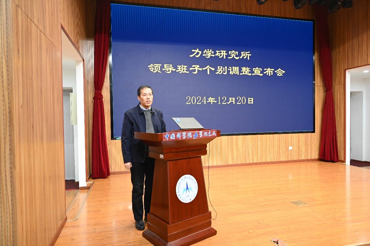 2024年12月20日上午,中国科学院人事局到力学研究所宣布领导班子个别调整。中国科学院副秘书长兼人事局局长孙晓明出席并主持会议,所领导班子成员、党委委员、所务委员、纪委委员、党支部(总支)书记、科研和管理骨干等160余人参加了会议。