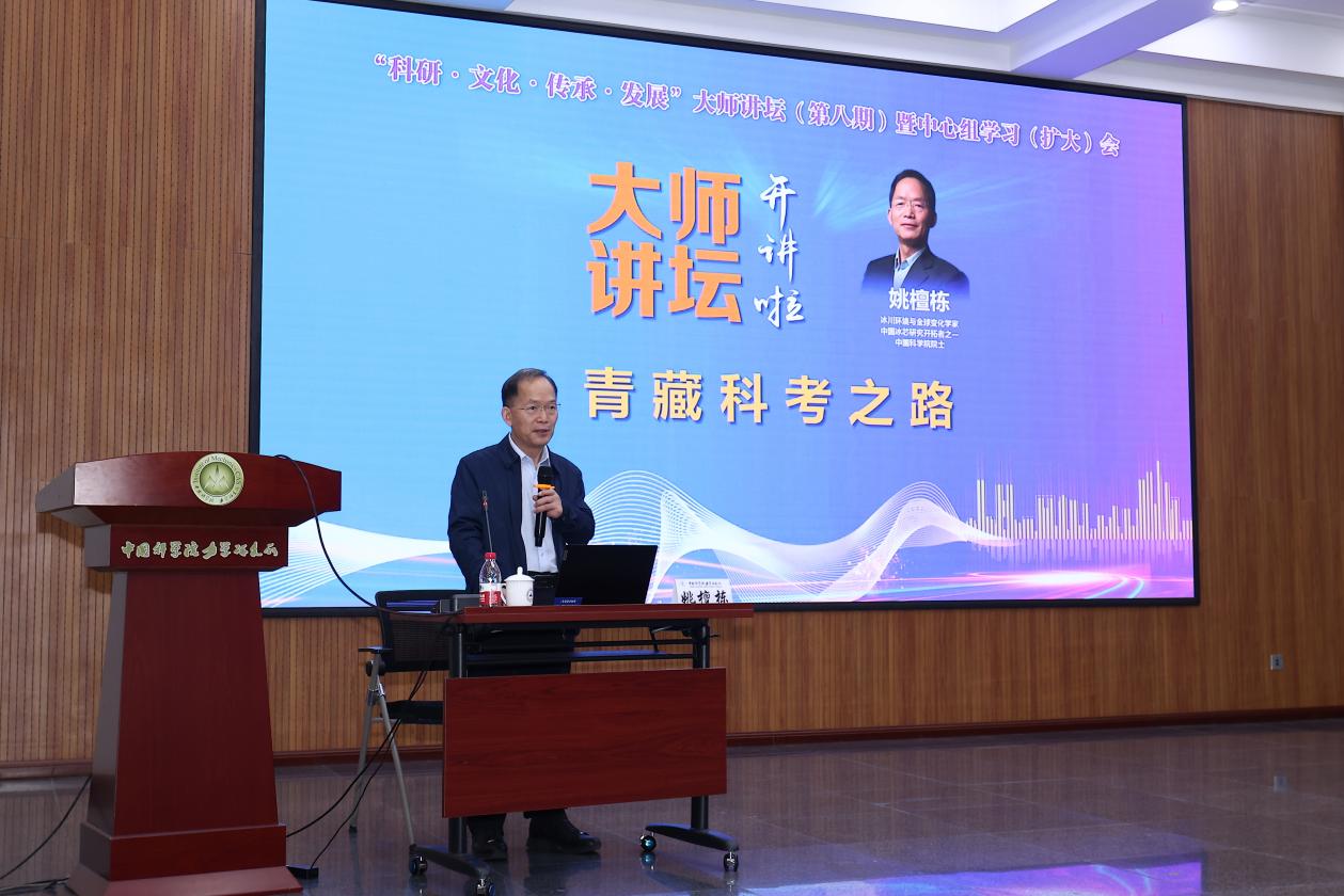 为深入学习贯彻党的二十届三中全会精神,大力弘扬传承科学家精神,12月30日上午,Q彩网举办“科研·文化·传承·发展”大师讲坛第四期暨中心组学习(扩大)会,邀请了冰川环境与全球变化学家、中国冰芯研究开拓者之一、中国科学院院士姚檀栋作为主讲嘉宾。青藏高原所党委委员、副所长、第二次青藏科考临时党委副书记安宝晟研究员,青藏高原所王伟财研究员,Q彩网所领导班子成员、党委委员,所内职工学生等100余人参加本次讲坛。活动由党委书记刘桂菊主持。