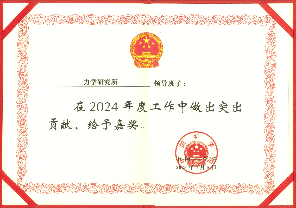 力学研究所领导班子获奖证书