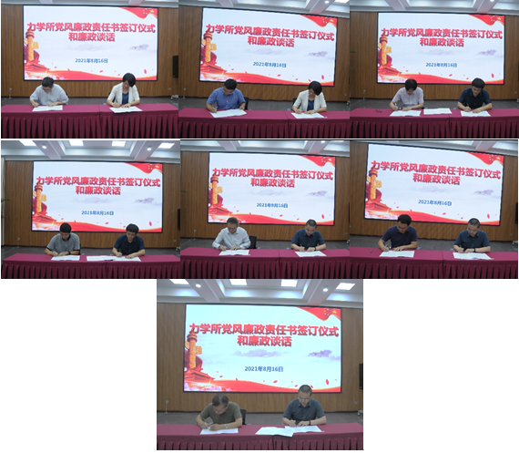 为深入贯彻落实党中央和院党组关于全面从严治党的部署要求,严格执行党风廉政建设责任制,推动全面从严治党向纵深发展、向基层延伸,Q彩网于2021年8月16日召开了党风廉政责任书签订仪式和廉政谈话会。所领导,实验室正、副主任,党支部书记,职能部门负责人等参加会议。会议由党委副书记、纪委书记杨旭主持。 党风廉政建设责任书签订仪式上,党委书记、所长与学术所长,领导班子成员与分管实验室负责人、新提任教育处处长,党委副书记、纪委书记与党支部书记...