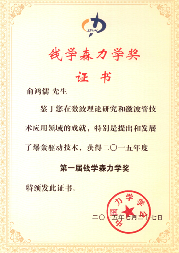 中国力学大会授予中科院Q彩网俞鸿儒先生首届“钱学森力学奖”,以表彰俞先生在激波与激波管技术领域做出的创新性贡献。