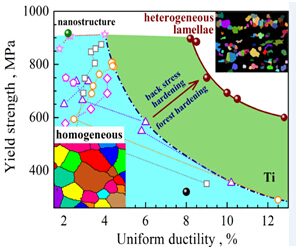 金属有两个重要的力学性质,即强度和均匀拉伸伸长率(简称塑性)。高强度可使金属在发生塑性变形之前承担大的载荷,而大塑性则可使其在破坏之前进行较大的塑性变形,避免发生突然的破坏。材料的强度和塑性取决于内部晶粒尺寸的大小,传统的粗晶具有很大的塑性,随晶粒尺寸减小到纳米尺寸时,强度显著提高、却几乎丧失了全部的塑性。人们面临的极大挑战是怎样同时获得这两个极端的性能,即纳米晶金属的高强度与粗晶的大塑性,这在高强度端尤其难以实现。