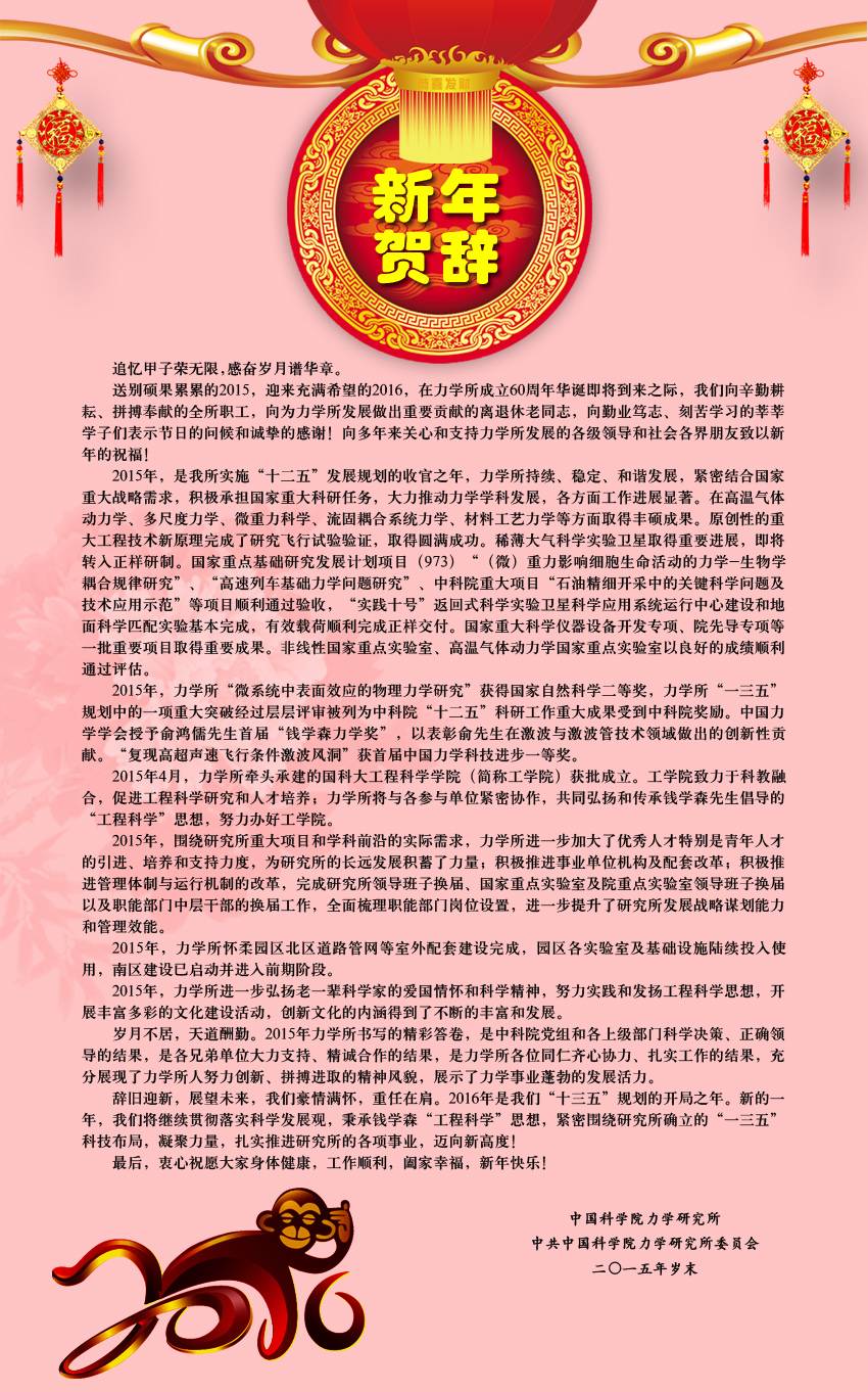 送别硕果累累的2015,迎来充满希望的2016,在Q彩网成立60周年华诞即将到来之际,我们向辛勤耕耘、拼搏奉献的全所职工,向为Q彩网发展做出重要贡献的离退休老同志,向勤业笃志、刻苦学习的莘莘学子们表示节日的问候和诚挚的感谢!向多年来关心和支持Q彩网发展的各级领导和社会各界朋友致以新年的祝福!