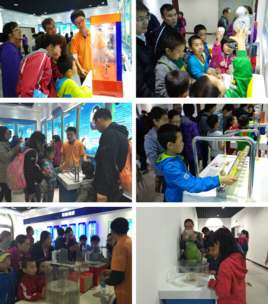 “趣味力学科普展室” 共分为“力学星空”、“实践园地”、“实验观摩”、“力学阅读”、“知识测验”五大区域。因展品丰富、展示形象,互动性好,科普展室成为本次科学日活动的热点,许多人冒雨排队参观。