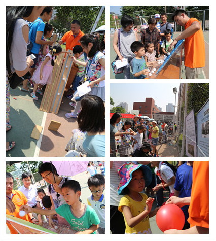 操场上的动手体验,成了小学生和家长最喜欢的项目,乒乓球投篮、前仰后翻、动物爬绳、巧扎气球,简单的科学原理,可以大大激发孩子们对于科学的兴趣,体验力学的神奇。