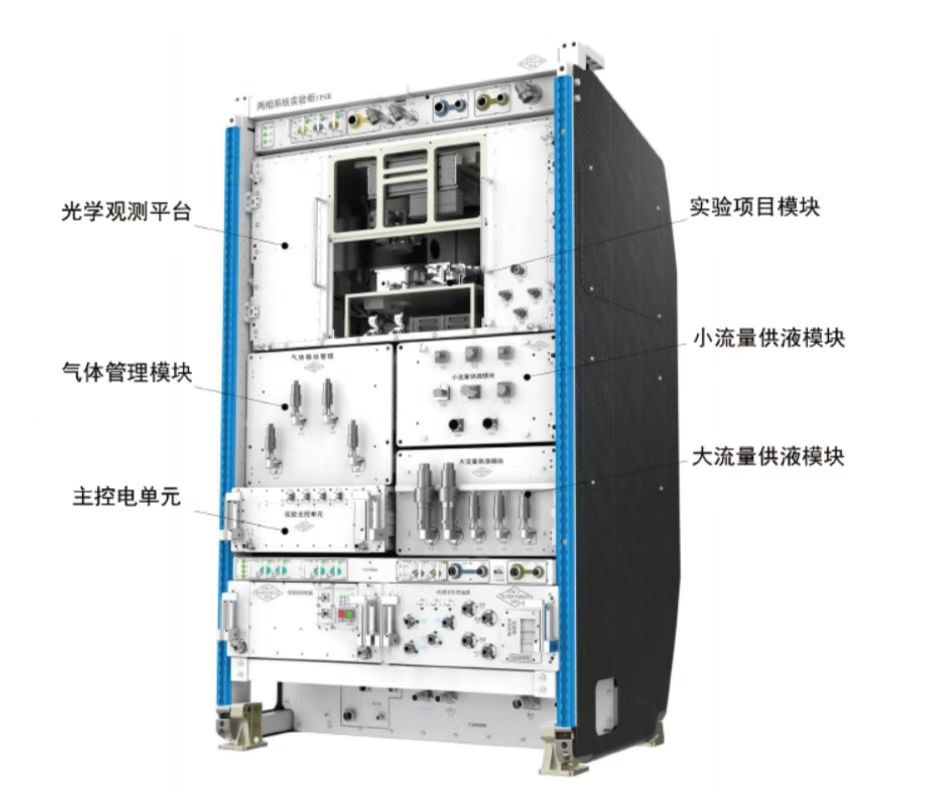流体物理实验柜集成了10套宏观尺度的流体动力学测试系统,采用了先进的数字全息干涉、红外热像、粒子图像测速及激光多普勒测速和高精度表面形变测量等技术;配置了4套微观尺度的复杂流体测试系统,如显微观测、流变仪、动/静态光散射仪和光谱仪等,可开展多种流体体系的动力学过程、扩散过程,胶体相变及自组织行为的在轨微重力实验。两相系统实验柜构建了可更换、多流量、宽温域的液/气工质供给及循环利用系统,可实现多工位和多参数协同观测,支持两相流动与相变传热空间科学与应用技术系列实验研究,是国际上首个专用于空间两相系统研究的大型空间实验平台。两个流体科学实验平台超越了国际空间站3个已有流体实验柜形成的综合实验与测试手段,将全面提升我国微重力流体物理研究能力与水平。