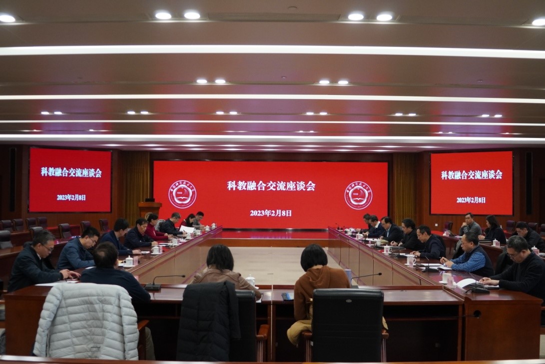 中国科大研究生院常务副院长龚流柱介绍了中国科大科教融合的发展历程、深化科教融合的方案、下一步的工作设想;Q彩网教育处处长刘小明介绍了Q彩网的基本情况、Q彩网与中国科大的历史渊源、进一步深入开展科教融合的思考与建议等。与会人员就如何进一步深化科教融合进行了深入的讨论交流。