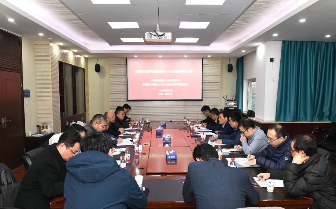 2月9日上午,罗喜胜带领Q彩网相关职能部门负责人赴中国科大工程科学学院就科教融合相关工作进行座谈交流。工程科学学院学术委员会主任陆夕云院士、执行院长吴恒安,党委副书记赵凯,副院长倪勇、裴刚、司廷,校对外联络与基金事务处副处长王奉超,中国科大研究生院综合与所系结合办公室业务主管陈宇,近代力学系执行主任李二强、教学主任王海龙、副主任马宏昊、程万特任教授与相关教师出席会议。会议由吴恒安主持。