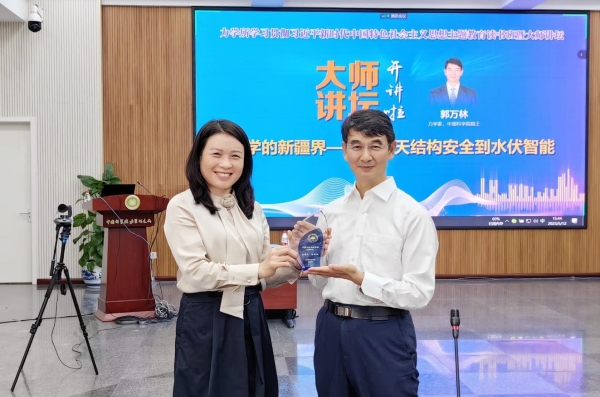 最后,刘桂菊为主讲嘉宾郭万林院士颁发了“大师讲坛”纪念杯。