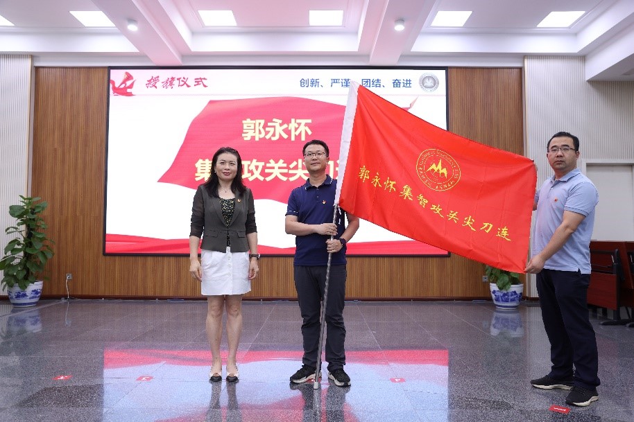 向郑哲敏聚力探索先锋队授旗