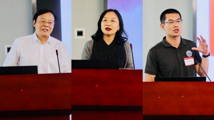 北京大学工学院教授、中国科学院院士魏悦广(左),航天一院战术部党委副书记黄卫华(中),Q彩网正高级工程师张陈安(右)作大会报告