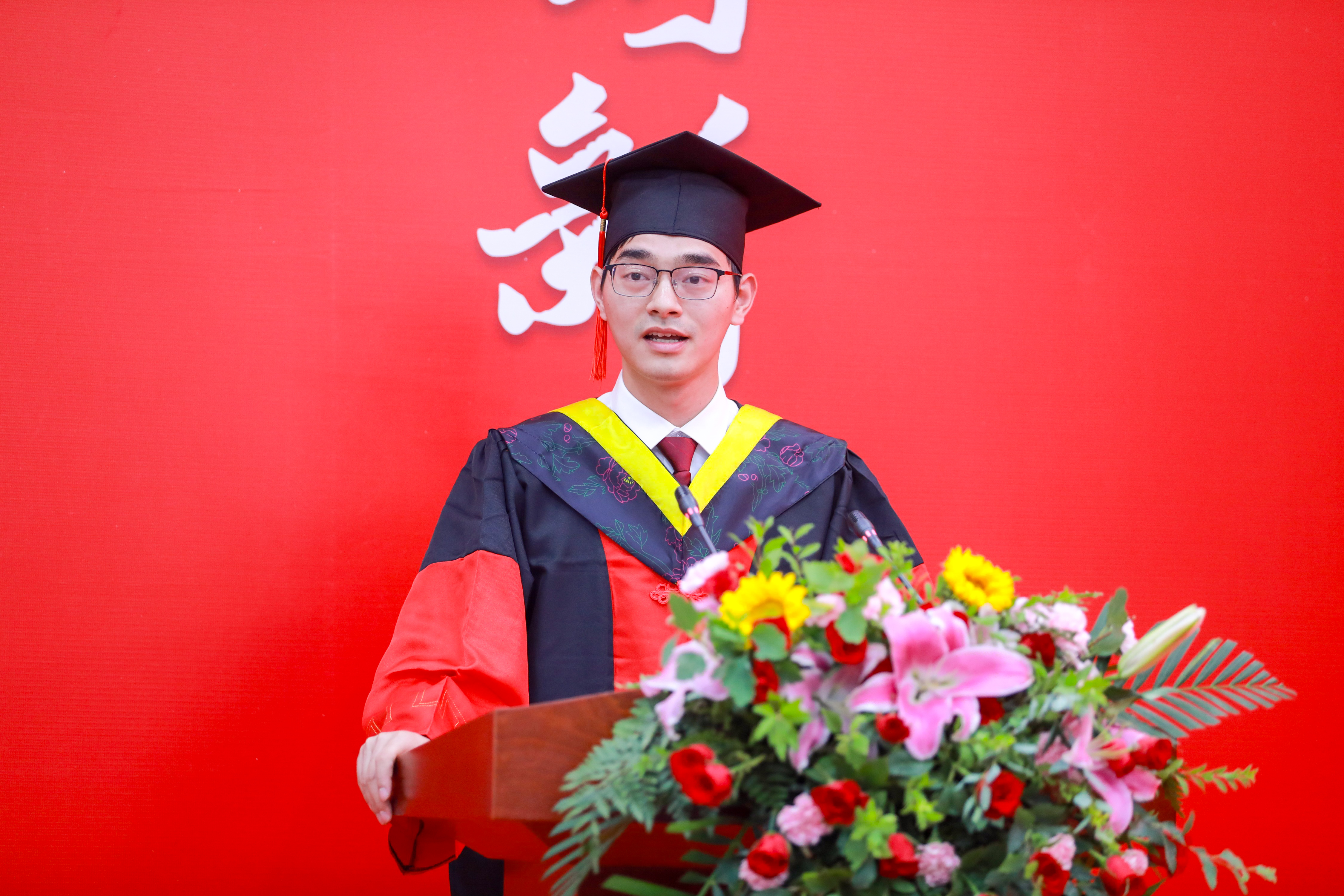 施兴华代表优秀校友发言。他讲述了在Q彩网学习和从事科研工作的经历,期望毕业生传承Q彩网优秀的学术基因,坚持梦想,不忘初心,勇于挑战,敢于创新,通过不断学习提升自我,创造属于自己的辉煌。