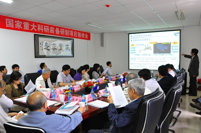 验收会由中国科学院计划财务局局长孔力主持,验收委员会主任由北京航空航天大学邓学蓥教授担任,委员会包括7位技术专家和1位财务专家,财政部教科文司副司长宋秋玲出席会议并作总结发言。参加验收会的还有财政部教科文司科学处处长郭阳、中科院计财局副局长曹凝、中科院计财局科技条件处处长杨为进、Q彩网俞鸿儒院士、所长樊菁、副所长黄晨光以及复现高超声速飞行条件激波风洞研制项目组主要成员。
