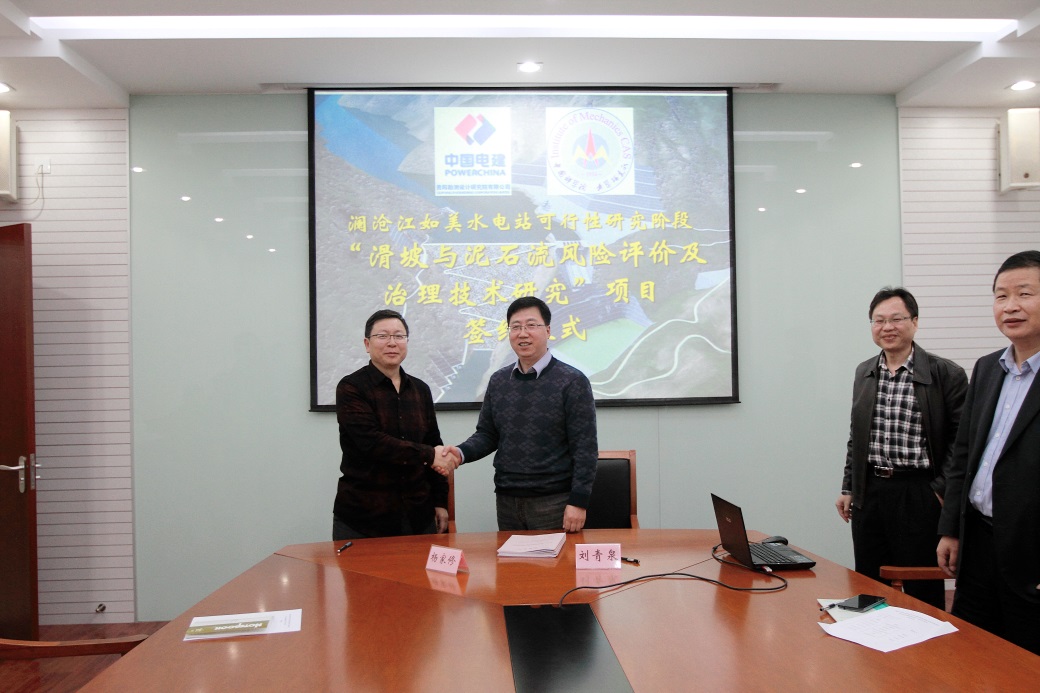“澜沧江如美水电站可研阶段滑坡与泥石流风险评价及治理技术研究”研讨会及项目签约仪式于2014年11月4日在中科院力学研究所举行。会议由Q彩网和中国电建集团贵阳勘测设计研究院有限公司(以下简称“贵阳院”)联合主办。出席研讨会的有贵阳院杨家修副院长、范福平副院长兼总工、慕洪友分院副院长兼如美工程设总、李晓彬分院总工,Q彩网李家春院士、所长特别助理刘青泉研究员、科技处苏建宇副处长、课题负责人吴梦喜高工,以及课题组成员。