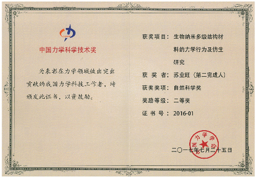 “生物纳米多级结构材料的力学行为及仿生研究”获得第三届中国力学自然科学二等奖