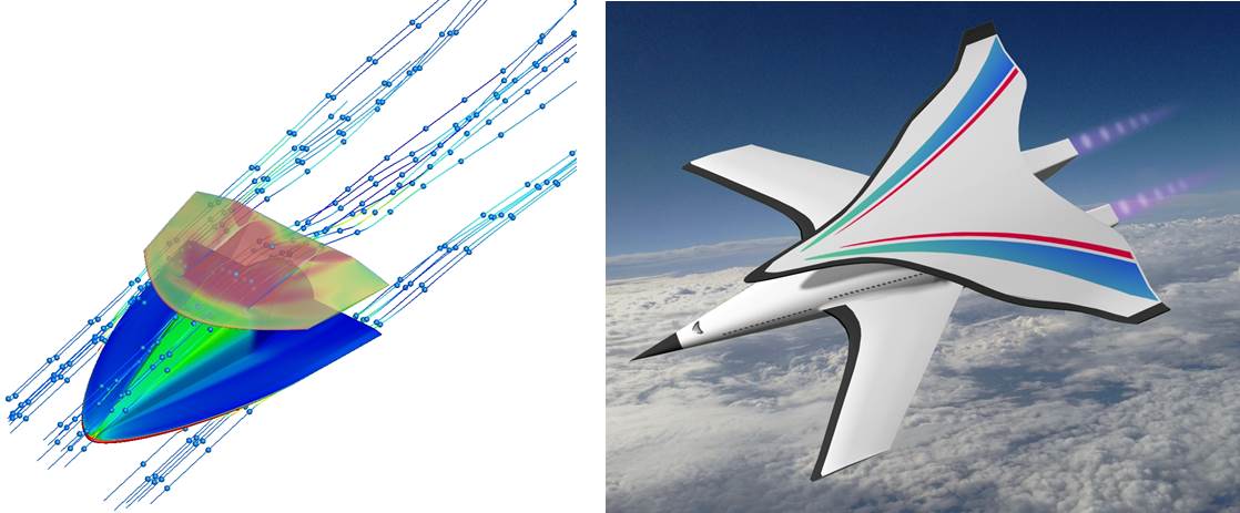 高超声速飞机的飞行速度一般可达现有飞机的7倍以上,可大幅缩短飞行时间,为未来洲际旅行提供一种更为快捷舒适的交通工具。飞行器的气动布局一般须具有“三高”特点,即高升阻比以保证其航程,高升力使其在高海拔巡航飞行条件下保持升重平衡,高容积率以满足载客/载货需求。但由于在高速飞行条件下,激波和摩擦阻力急剧上升,飞行器的升阻比很难提升。此外,升阻比和升力系数均与容积率存在强烈的矛盾关系,这是现阶段制约飞行器气动性能提升的主要瓶颈问题。