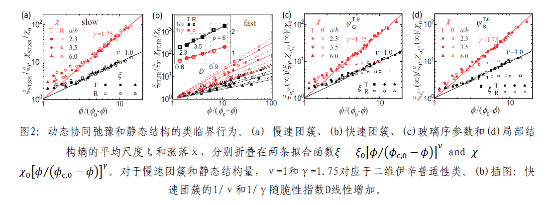 通过实验和模拟研究,不仅观察到理想玻璃化转变点f0的类伊辛临界行为,还观察到模式耦合转变点fC的非伊辛临界行为。伊辛临界存在于静态结构(局域最稳结构和局部结构熵)和动态量(缓慢移动粒子),对应一种热力学转变;非伊辛临界性只存在于快速运动粒子的动态量,对应一种动态转变。研究表明不同长径比的椭球体及平动和转动自由度,都具有相同的规律。这种非球形玻璃化系统的伊辛临界行为可根据P W Anderson的two-state model定性解释。