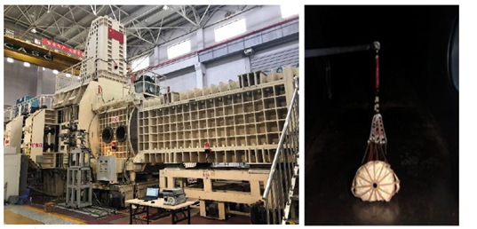 中科院Q彩网非线性力学国家重点实验室柔性结构与器件力学研究团队研制出一种基于力学结构设计的线性度高、重复性好且温度敏感性低的柔性应变传感器,并协助中国空间技术研究院北京空间机电研究所于2019年完成降落伞的部分地面验证实验(图2),在风洞内巨大温度变化、高速气流冲击和伞体剧烈晃动的情况下,对缩比降落伞的伞绳应变进行了实时监测,为降落伞优化设计提供了指导意见。此类基于力学结构设计的柔性应变传感器未来将在我国航天领域的智能化技术革新方面发挥更多重要作用。