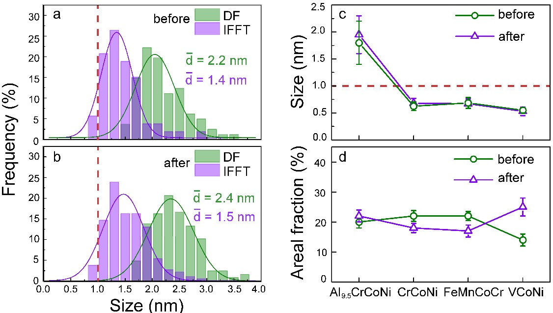 高熵合金是基于多个主要金属元素设计思路得到的一种合金材料,迄今一直在关注一个基本的问题,即在微观结构方面,高熵合金与传统合金相比究竟有什么不同。材料科学研究的一个核心内容是结构与性能的关系,这个关系在高熵合金中变得复杂起来,这是由于局域发生的焓的涨落与焓的交互作用,形成了原子尺度的成分与结构,包括化学成分浓度波、化学短程有序与点阵畸变等。现在看来,高熵合金中至少一个明确与传统合金不同的是形成了化学短程有序结构,很快引出了新的思考,即短程有序是否长大?高熵合金中长程有序结构(例如B2和