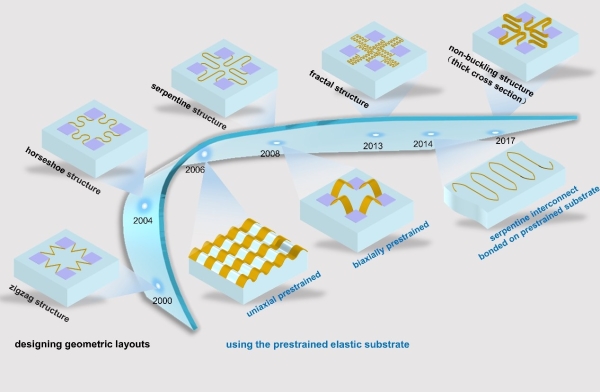 图1. 可拉伸结构在过去几十年的发展过程