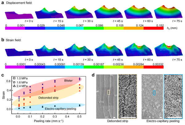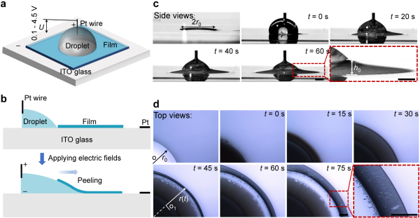 论文链接: https://doi.org/10.1038/s41467-023-41922-2 (Li PL, Huang XF, Zhao Y-P. Electro-capillary peeling of thin films. Nature Communications, 2023, 14: 6150.)