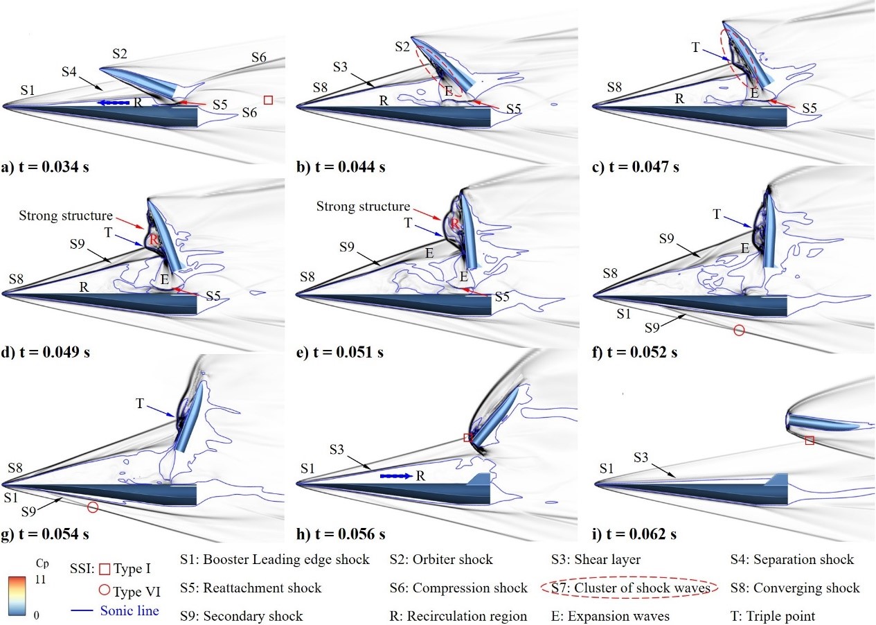 TSTO级间分离涉及到复杂的动态激波-激波干扰、激波-边界层干扰以及非定常流动与多体运动耦合等关键物理问题,是高速非定常流动的重要研究内容。两级高速分离过程中的流动现象和物理机制是TSTO安全分离的关键。