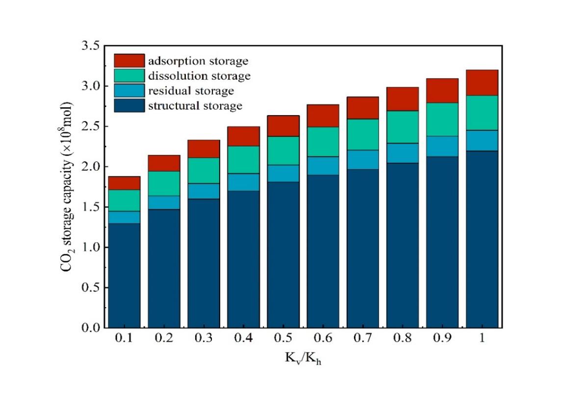 图2 二氧化碳封存能力随不同Kv/Kh比率变化关系图