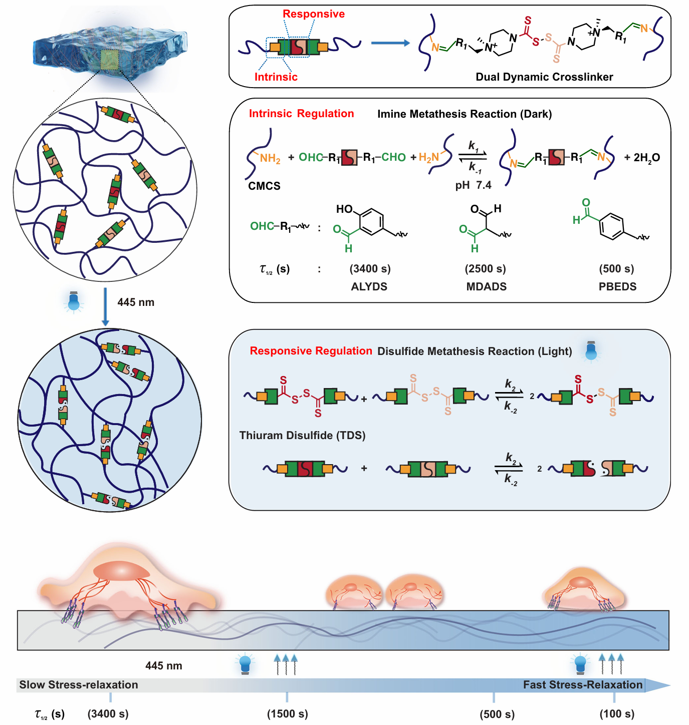 图1 具有可见光响应动态粘弹性水凝胶的设计和制备