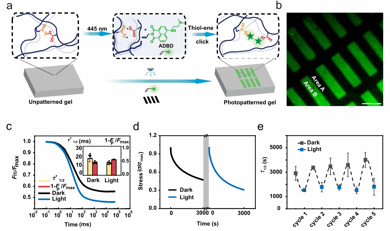 图2 水凝胶的高时空分辨光图案的制备和微小尺度粘弹性表征