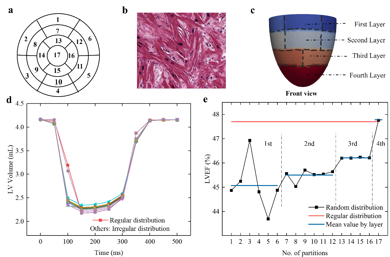 图3. 17节段中随机分布的心肌纤维对左心室收缩功能的影响